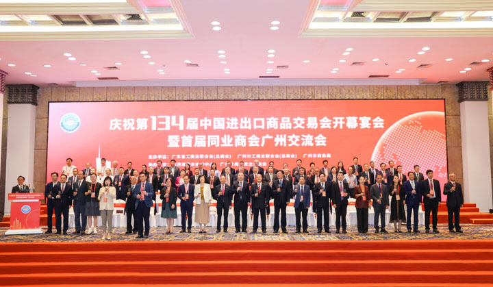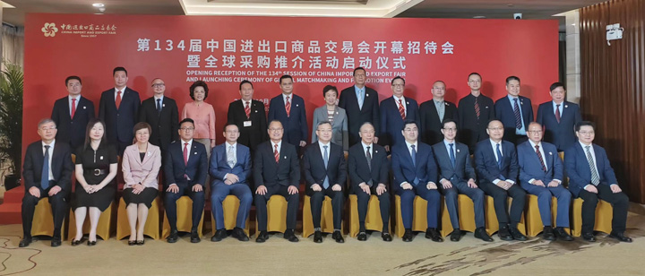 第134届广交会以“服务高质量发展,推进高水平开放”为主题,来自刚果(布)驻穗总领馆总领事艾博罗·埃曼纽尔(领馆团团长)等25国驻穗总领事,马来西亚、匈牙利、香港、澳门等境外重要工商机构负责人,各交易团团长、各进出口商会会长等聚首广州,交流合作,探寻商机。
