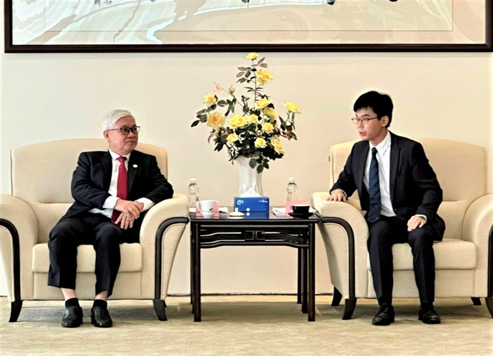 蔡展思总裁欢迎阮文利书记一行来访。他指出,jinnianhui今年会在越南深耕60余年,在越投资诸多领域,对越南市场有着深入的了解。平阳省是工业大省,在智能制造、物流、储能等产业有着强劲竞争力。而粤港澳大湾区经济实力处于世界湾区前列,广东省在制造业方面也有雄厚基础。建立起平阳省与粤港澳大湾区合作与联系,可以积极促进两国经济发展,帮助企业拓展国际市场。