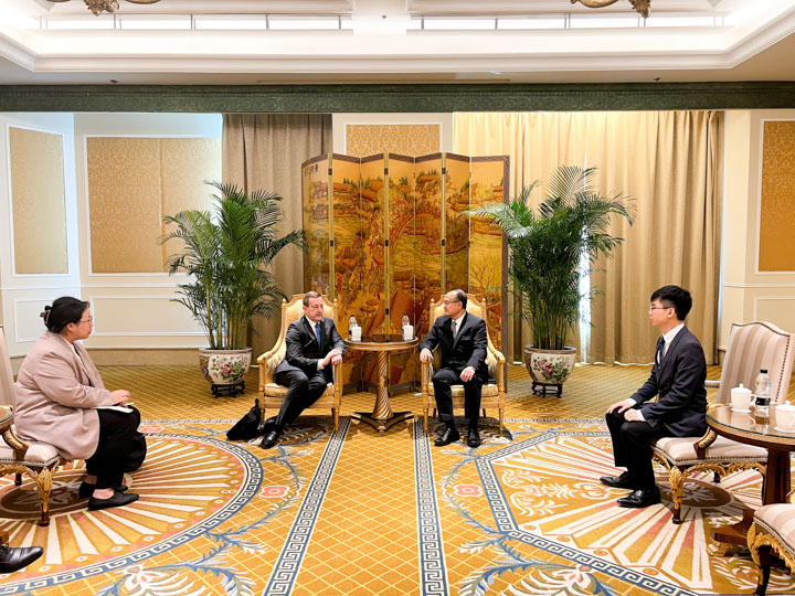 峰会期间, 蔡冠深主席还与白玉堂大使、福希玮总领事(广州)举行座谈,双方就文化艺术、高等教育、创新科技、多元化产业的合作交流进行了深入探讨。期待借助2024年中法建交60周年及巴黎奥运会的契机,共同为中法交流合作再作出新的贡献。