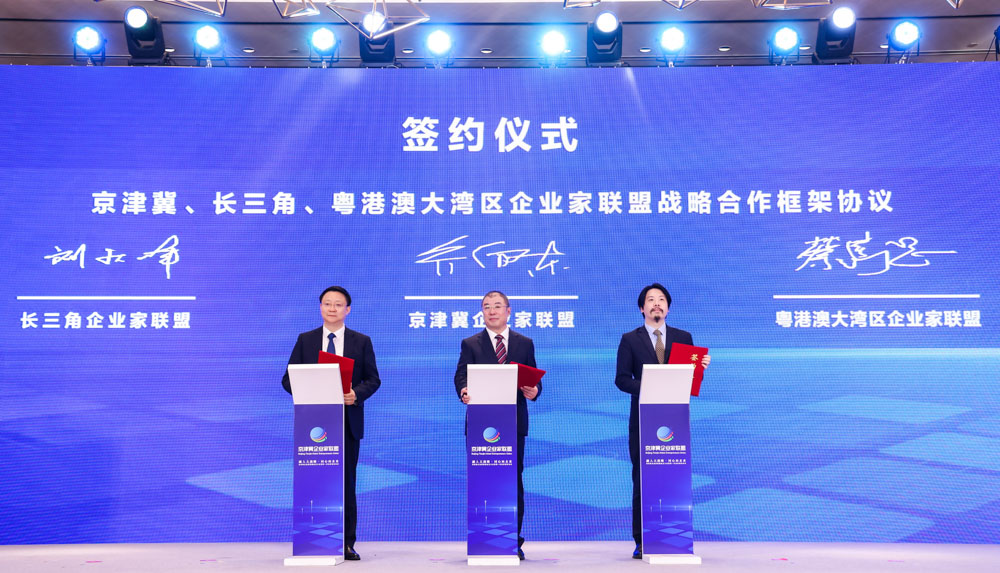 蔡隽思执董在致辞中赞扬京津冀企业家联盟成立欣逢其时。他表示,京津冀协同发展与粤港澳大湾区建设均为国家重大发展战略,两个区域紧密合作,对打造国内国外双循环经济发展新格局意义重大。他介绍,作为大湾区最有影响力的工商团体之一,粤港澳大湾区企业家联盟成立六年来,服务中外企业交流合作和对接等多方面工作均取得出色成果。希望以本次大会为新的起点,京津冀、粤港澳和长三角的企业家携手同心,共同促进彼此经贸、人文、科技、教育等多方面的深度交流融合,实现互利共赢。