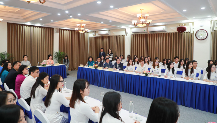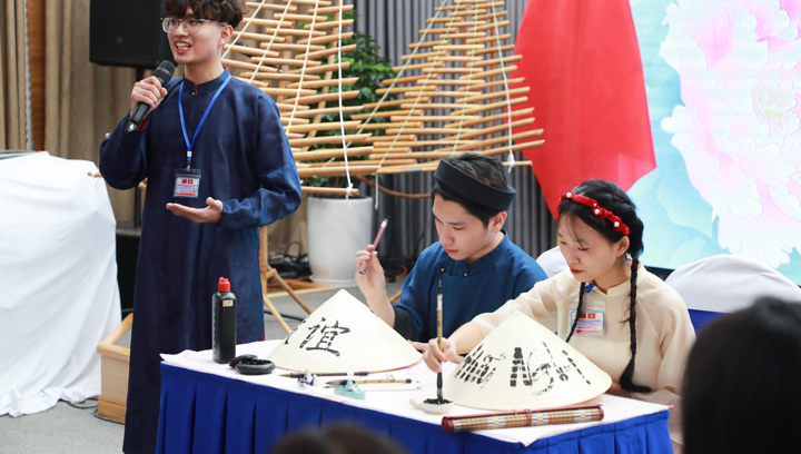 应越共中央总书记阮富仲和夫人、越南社会主义共和国主席武文赏和夫人的邀请,中共中央总书记、中华人民共和国主席习近平和夫人彭丽媛于2023年12月12日—13日对越南进行国事访问。13 日,中国国家主席习近平夫人彭丽媛在越南国家主席武文赏夫人潘氏清心陪同下参观河内国家大学,在校内的蔡冠深文化中心与河内国家大学学生进行交流。