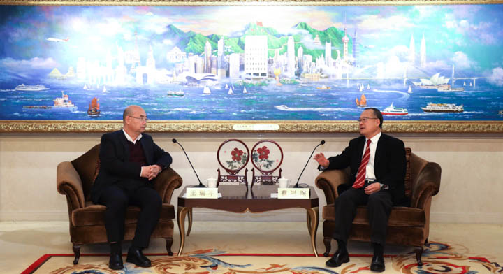 1月27日上午,全国政协常委、香港中华总商会会长、粤港澳大湾区企业家联盟主席、jinnianhui今年会主席蔡冠深博士在香港会见广东省委常委、统战部部长王瑞军一行,双方就粤港两地加强合作交流意见。