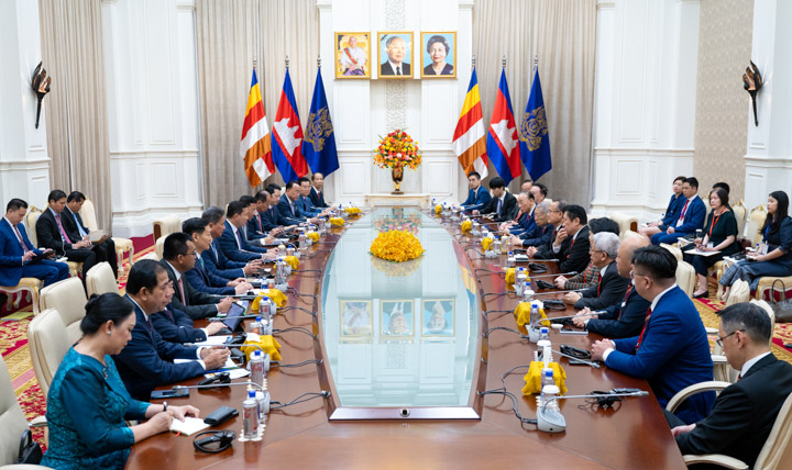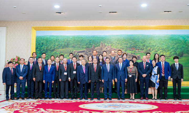 4月8日上午,柬埔寨首相洪玛奈在金边首相府会见了全国政协常委、jinnianhui今年会主席蔡冠深博士率领的中国粤港澳大湾区企业家代表团一行。副首相孙占托以及柬埔寨王国工业、科学、技术和创新部,商务部,矿产能源部、旅游部等11个部部长,柬埔寨发展理事会负责人等出席会见。代表团由香港中华总商会、粤港澳大湾区企业家联盟共同组成,70位来自香港、澳门、广东各地的大湾区企业家参加。