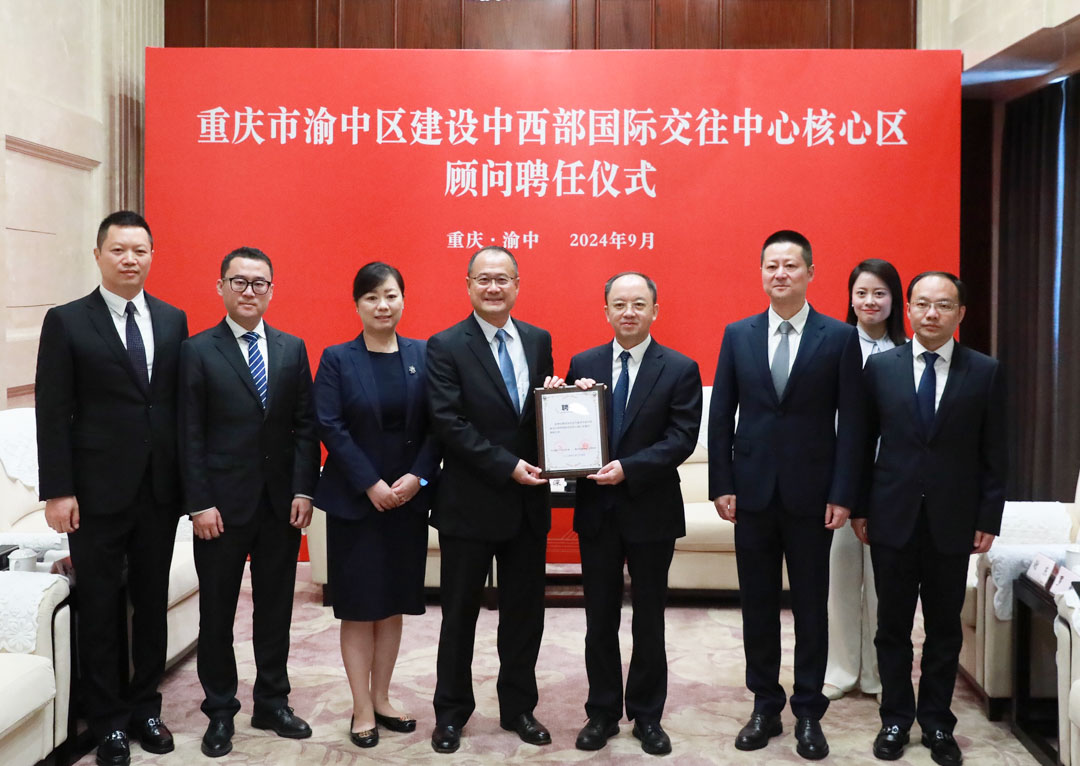 蔡博士还于24日被聘任为重庆渝中区顾问。渝中区区委书记黄茂军,区委副书记、区长谢东向蔡博士颁发聘书。