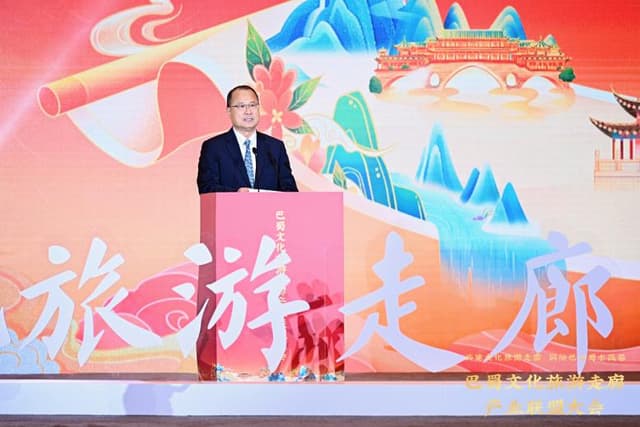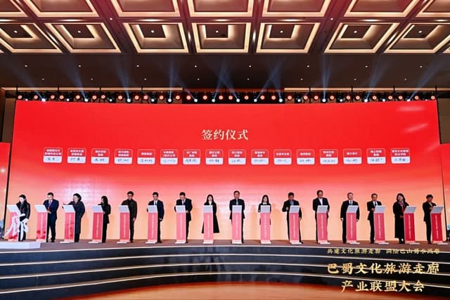 巴蜀文化旅游走廊产业联盟大会由重庆市委宣传部、四川省委宣传部、重庆市文旅发展委、四川省文旅厅、重庆市国资委、四川省国资委指导,重庆市永川区人民政府、重庆文化旅游集团和四川省旅游投资集团主办。