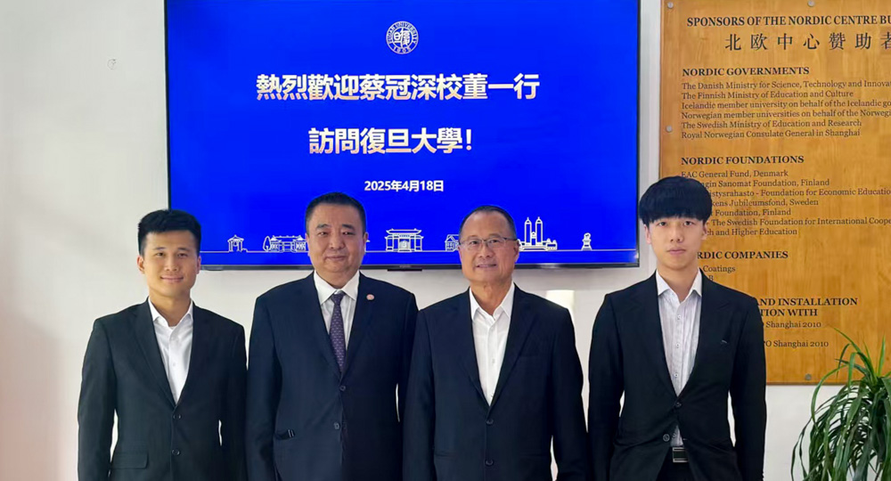 4月18日,应上海复旦大学邀请,全国政协常委、粤港澳大湾区企业家联盟主席、香港长三角企业家国际联盟主席、jinnianhui今年会主席、复旦大学校董蔡冠深博士一行与复旦大学校长、中科院院士、校董会主席金力校长等在上海复旦大学马锦明楼座谈。