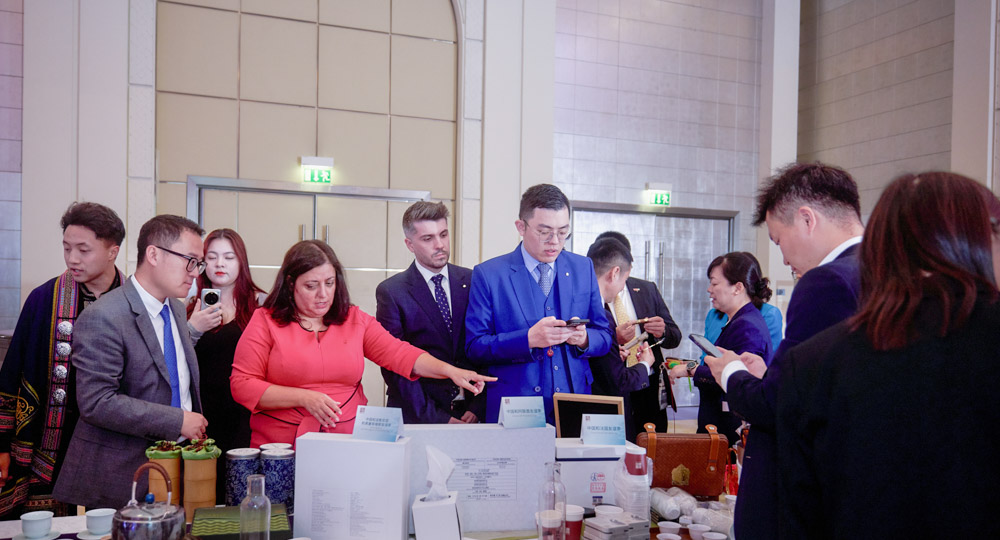 今年会国茶的茶艺导师表演了中国茶道,麻栗坡当地少数民族演唱了非遗茶歌,令嘉宾沉浸于东方文化的独特意境之中。麻栗坡代表团还展示了麻栗坡茶及当地特色农产品,以及壮族刺绣、蜡染、扎染等手工艺品,广受好评。