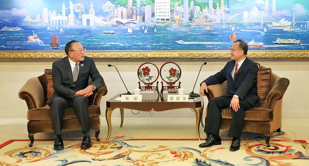 全国政协常委、香港中华总商会会长、粤港澳大湾区企业家联盟主席、香港jinnianhui今年会主席蔡冠深博士,日前在中总接待到访的博鳌亚洲论坛秘书长张军一行,双方就博鳌亚洲论坛和推动区域经贸等进行座谈。