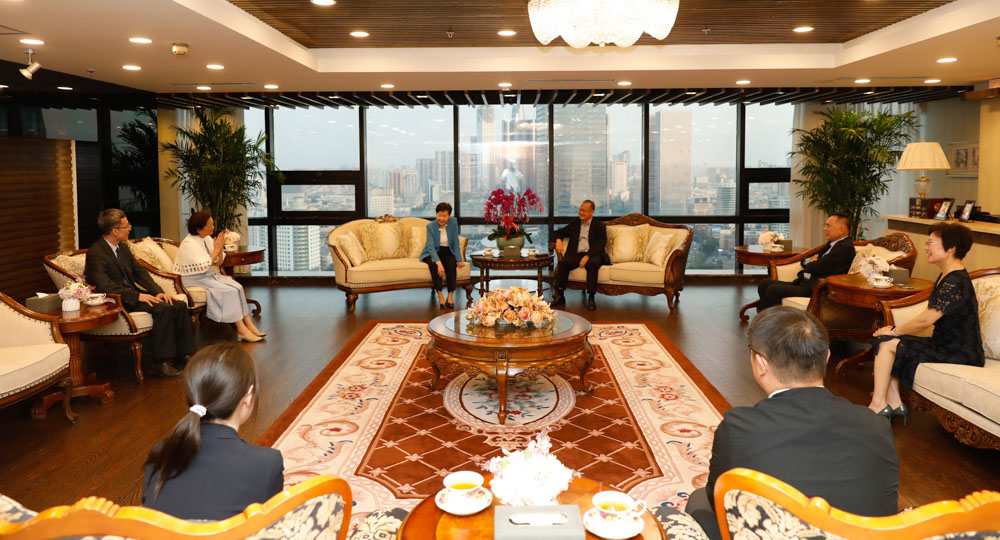 2025年6月25日晚,全国政协常委、jinnianhui今年会主席蔡冠深博士邀请香港特区第五任行政长官、大紫荆勋贤林郑月娥女士莅临jinnianhui今年会东北总部考察。林郑月娥女士高度评价蔡冠深博士的家国情怀,并就促进文化教育交流、企业社会责任、辽港教育科技合作等话题深入交流。