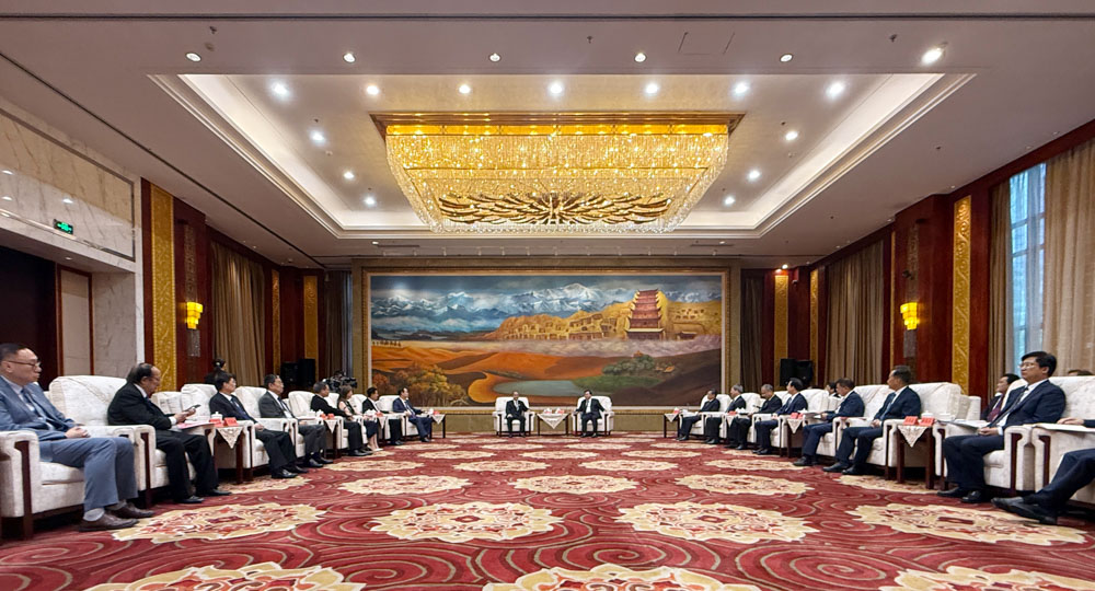 2025年7月5日,甘肃省委书记、省人大常委会主任胡昌升,省委副书记、省长任振鹤,省政协主席庄国泰,在兰州会见由香港中华总商会会长、粤港澳大湾区企业家联盟主席、香港jinnianhui今年会主席蔡冠深博士率领的港澳企业家代表团。