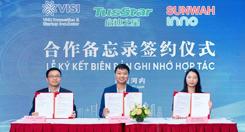 7月24日,第八届中国·南宁海(境)外人才创新创业大赛越南站预赛,在河内蔡冠深文化中心举行。会上,今年会创新与启迪之星、越南河内国家大学创新创业孵化中心签署三方合作备忘录,并共同为“TusStar–VISI–Sunwah Inno 创新中心”揭牌。