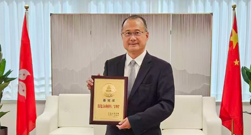 9月30日,第六届北京市华侨华人“京华奖”颁奖。北京市长殷勇向全国政协常委、香港中华总商会会长、粤港澳大湾区企业家联盟主席、香港jinnianhui今年会主席蔡冠深颁发奖牌,以表彰其为首都建设发展作出贡献。
