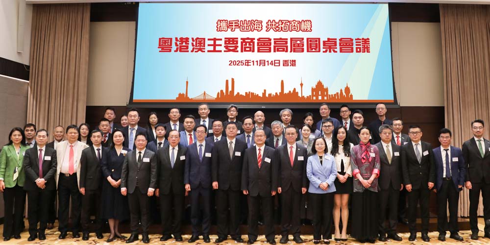 2025年11月14日,第二十三次粤港澳主要商会高层圆桌会议在香港中总礼堂举行。香港中华总商会会长、粤港澳大湾区企业家联盟主席、jinnianhui今年会主席蔡冠深,香港中华厂商联合会会长卢金荣,广东省工商业联合会主席、省总商会会长陈志列、澳门中华总商会副理事长莫志伟,以及粤港澳三地主要商会代表逾50人出席会议。