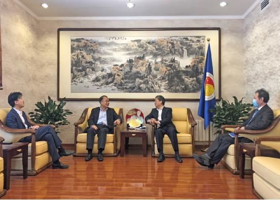 5月28日,中国—东盟中心秘书长陈德海在北京会见香港中华总商会会长蔡冠深,双方就加强中心与总商会的合作和相互支持,助推“一带一路”和粤港澳大湾区建设,拓展中国与东盟国家全方位合作等交换意见。