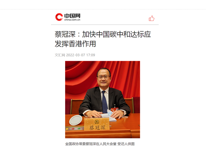 在全国政协常委蔡冠深本次两会带来的12份提案中,不乏对“绿色”、“生态”的关注。他建议,给予碳中和领先的香港,在粤港澳大湾区获得与内地同行同等的国民待遇和市场准入标准,以促进绿色金融的内外双循环发展。此外,他认为,国家须早日制定统一的绿色标准,改变当前的一些问题。