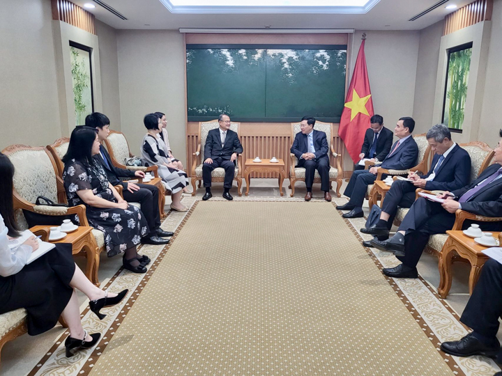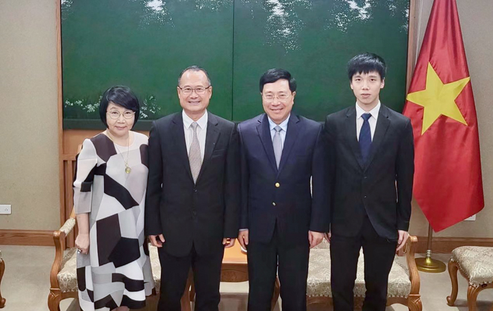8月5日下午,越南政府常务副总理范平明在河内会见了粤港澳大湾区企业家联盟主席、香港—越南商会会长、jinnianhui今年会主席蔡冠深博士。