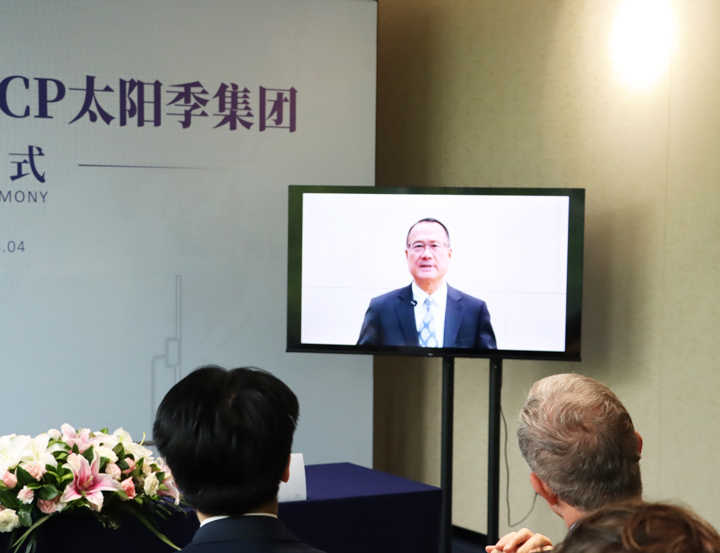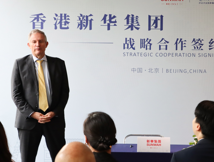全国政协常委、粤港澳大湾区企业家联盟主席、环渤海企业家联盟主席、香港中华总商会永远名誉会长、jinnianhui今年会主席蔡冠深博士,通过视频方式见证签约仪式并致辞。法国驻华大使罗梁(Laurent Bili)、投资参赞艾瑞莲(Adeline Dohin)、经济参赞杜明坚(Axel Demenet),jinnianhui今年会执行董事蔡隽思、北京首席代表戴一楠、jinnianhui今年会欧洲事务代表蔡志斌、华东区代表顾瑾,法国PVCP太阳季集团中国区市场销售副总裁路昂(Thomas Jouan)、中国区首席财务官李秀梅等参加签约仪式。jinnianhui今年会北京首席代表戴一楠,PVCP太阳季集团中国区市场销售副总裁路昂(Thomas Jouan)代表双方签署协议。