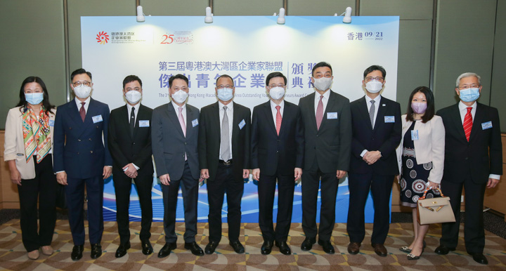 李家超特首致辞时称,粤港澳大湾区建设是国家改革开放下的重大发展战略。今届评选活动不但发扬企业家精神,更鼓励有志于大湾区创业的香港青年,踏出创业的第一步。特区政府会继续支持香港青年到大湾区发展,在更大的舞台上一展抱负。他祝贺得奖的杰出青年企业家,希望他们继续贡献粤港澳大湾区建设。