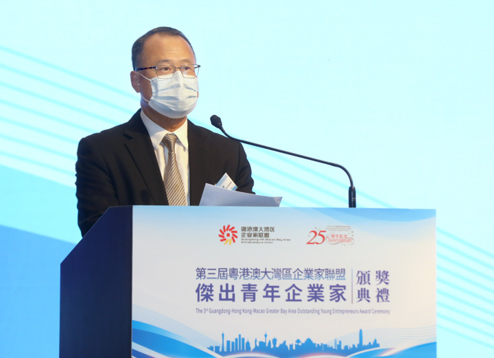 他指出,粤港澳大湾区杰出青年企业家评选的成功举办,就是最好的见证。这一届我们经过严格评审,从粤港澳三地逾千份报名表中,选出102位获奖者,他们是新一代企业的佼佼者。除从事传统优势行业外,亦涵盖大湾区内创新科技、高端制造业、医疗大健康、绿色能源等新兴领域。还有多家独角兽企业,以及在文化、社会公益等方面做出卓越贡献的青年企业家。不少粤港澳知名企业的第二代甚至是第三代掌舵人,凭借自己的出色业绩,在本次评选中获得殊荣。