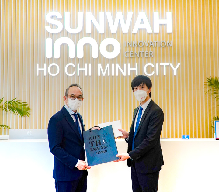 10月26日下午,泰国驻越南大使Nikorndej Balankura、泰国驻胡志明市总领事Wiraka Moodhitaporn一行到访胡志明市今年会创新中心,集团东南亚区域总裁蔡卓思热情接待并会谈。