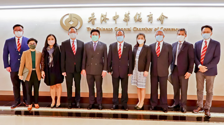 总领事对大湾区的机遇深表兴趣,亦希望了解香港可担当的角色。蔡博士指出大湾区是集生产基地、完善供应链以至创科中心于一身,并兼备庞大的消费市场。香港作为大湾区四大核心城市之一,更是连接中国及海外的枢纽。他补充指出香港的法治优势有利于为国际贸易提供经济和高效的调解服务,同时简单的税制亦吸引海内外企业在港设立分支。总领事乐见两地加强合作,并会向泰国工商界推广香港优良的营商环境。