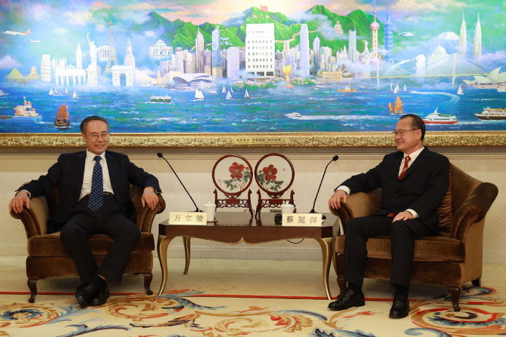中华全国归国华侨联合会(下称“中国侨联”)主席万立骏一行日前到访香港中华总商会(下称“中总”),与中总会长、jinnianhui今年会主席蔡冠深博士等就两会加强合作交流意见。
