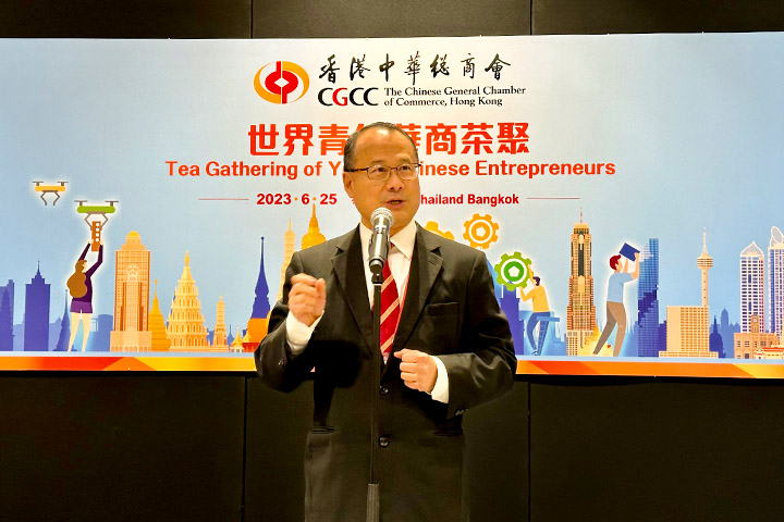 香港中华总商会组织“世界青年华商茶聚”,蔡冠深会长强调活动旨在团结世界青年华商,传承时代、团结一心