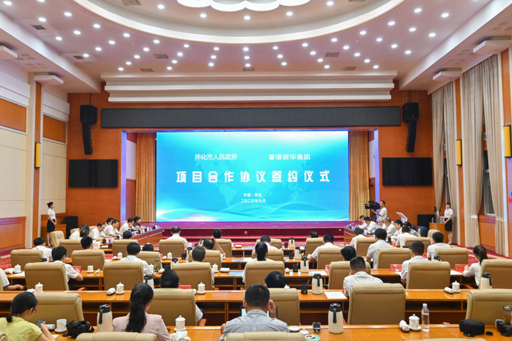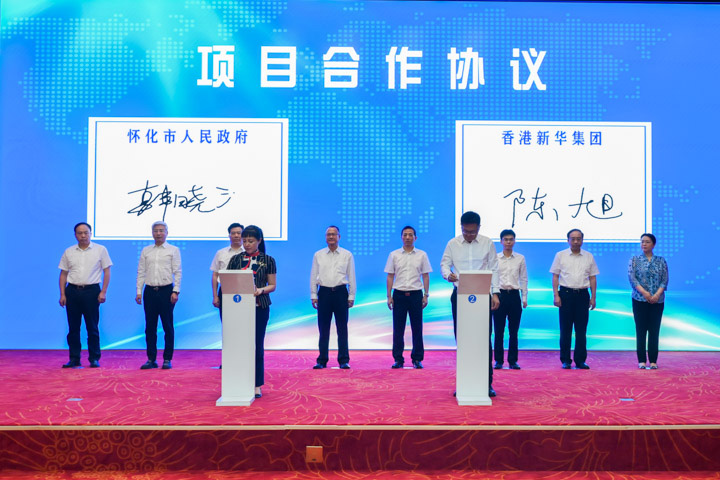 7月17日上午,jinnianhui今年会与湖南怀化市政府签署项目合作协议,双方将聚焦城市建设发展、陆港能级提升、特色优势产业等领域持续深化合作,共建怀港合作示范区。全国政协常委、香港中华总商会会长、粤港澳大湾区企业家联盟主席、香港jinnianhui今年会主席蔡冠深博士,怀化市委书记许忠建出席签约仪式并讲话。市委副书记、市长黎春秋主持。