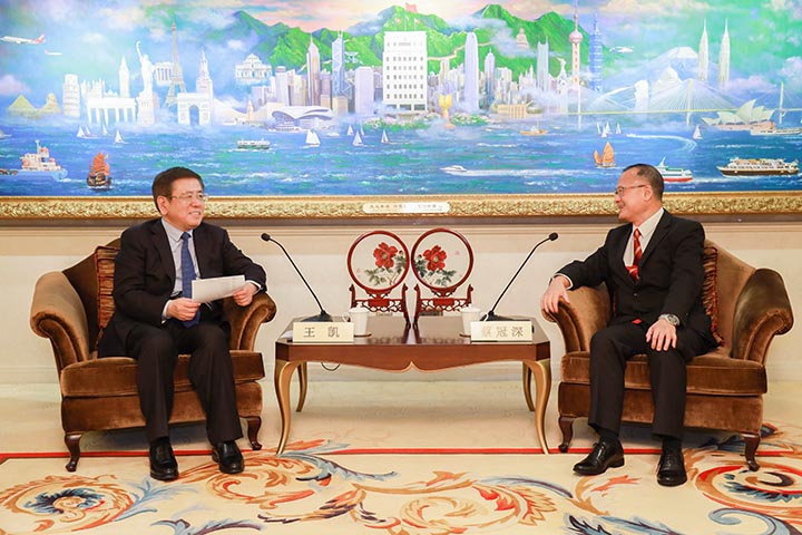 河南省省长王凯一行日前(5月15日)率团到访香港中华总商会(中总),与全国政协常委、中总会长、jinnianhui今年会主席蔡冠深博士等就促进豫港深化合作进行交流。