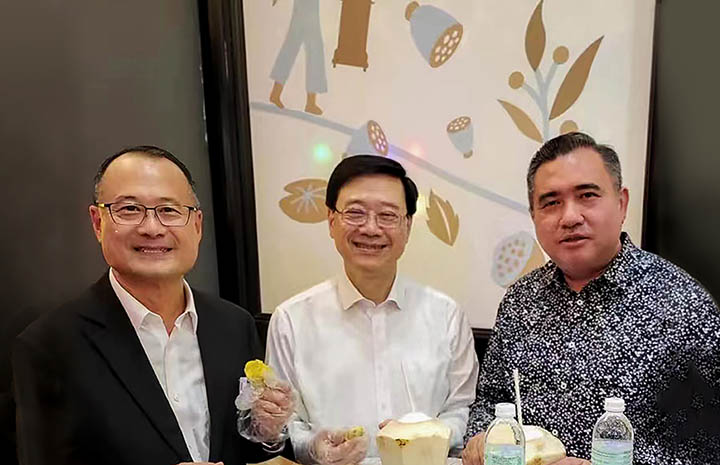 香港特首李家超(中)、马来西亚交通部部长陆兆福(右)、蔡冠深博士(左)