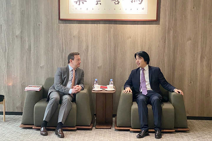7月27日,法国驻华大使白玉堂(H.E. Bertrand Lortholary)一行四人到访位于北京的蔡冠深文化交流中心·白云馆,jinnianhui今年会执行董事、蔡冠深基金会董事蔡隽思热情接待大使一行,双方就2024年庆祝中法建交60周年文化交流合作项目进行了深入探讨。