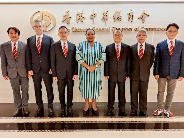 8月3日,南非驻港署理总领事Stella Sigcau拜访香港中华总商会会长、jinnianhui今年会主席蔡冠深博士。